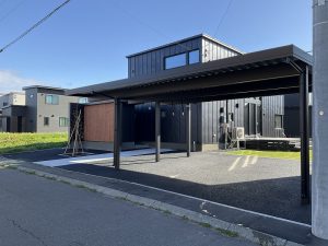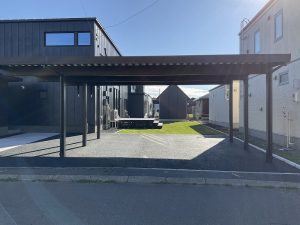 カーポートが2台用ワイド+間口延長のタイプです。